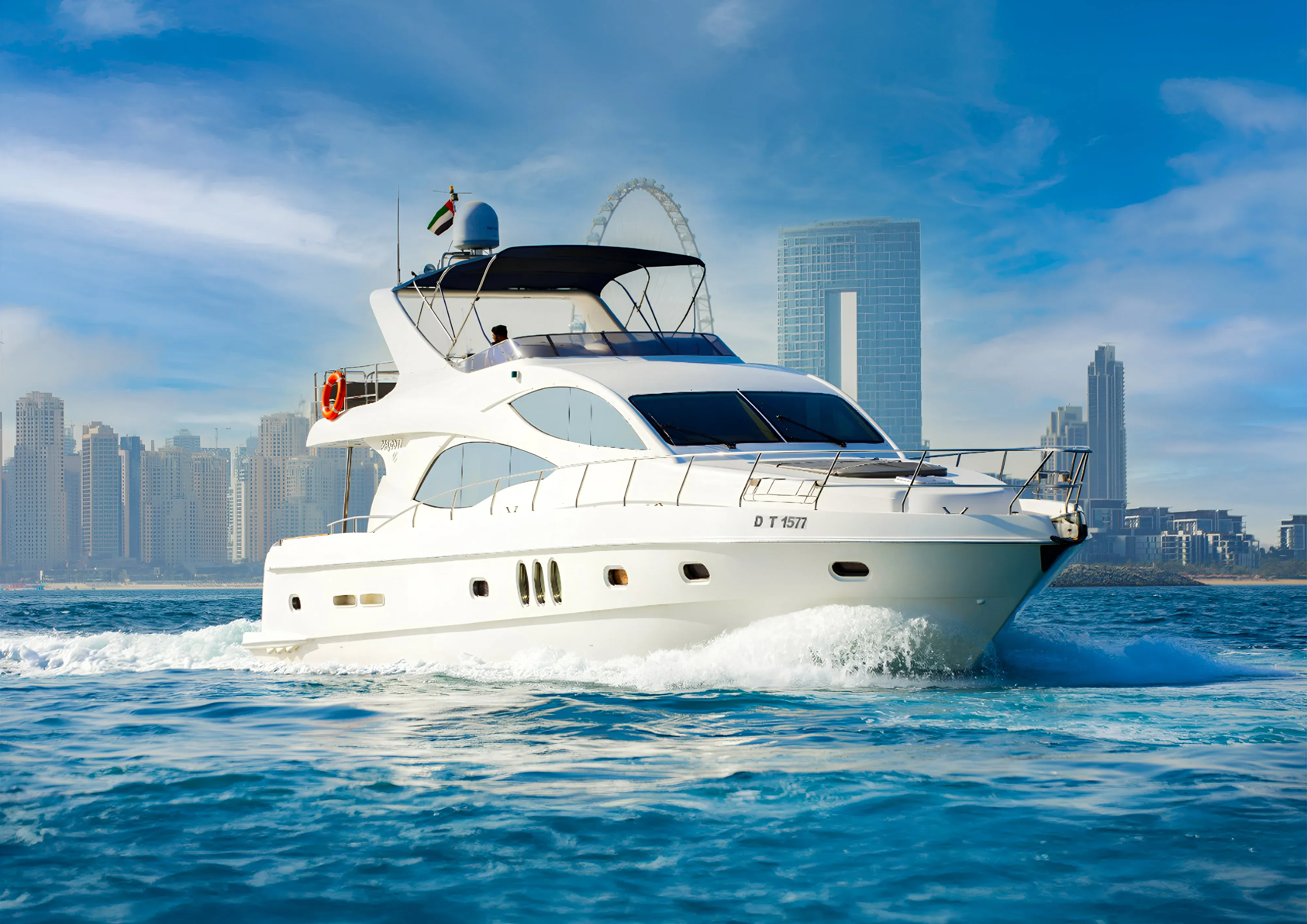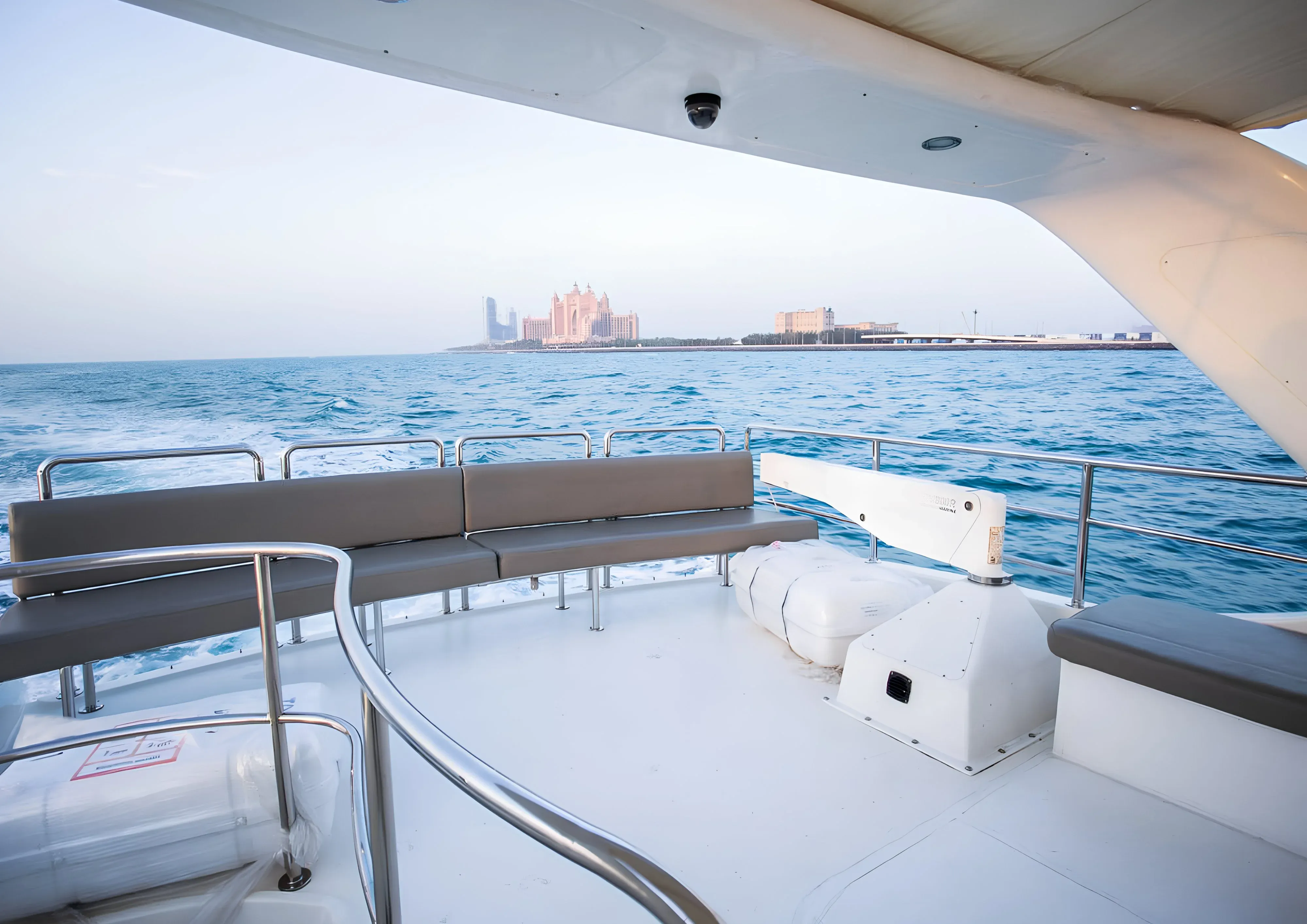 With the capacity to host around 25–30 guests, the Majesty 66 is a popular choice for birthdays, small events, family trips, corporate outings, or simply a relaxing cruise around Dubai Marina, Palm Jumeirah, Atlantis, and the city’s famous landmarks. Whether you’re planning a lively celebration or a peaceful day on the water, the Majesty 66 offers a luxurious and memorable yachting experience from the moment you step aboard.
