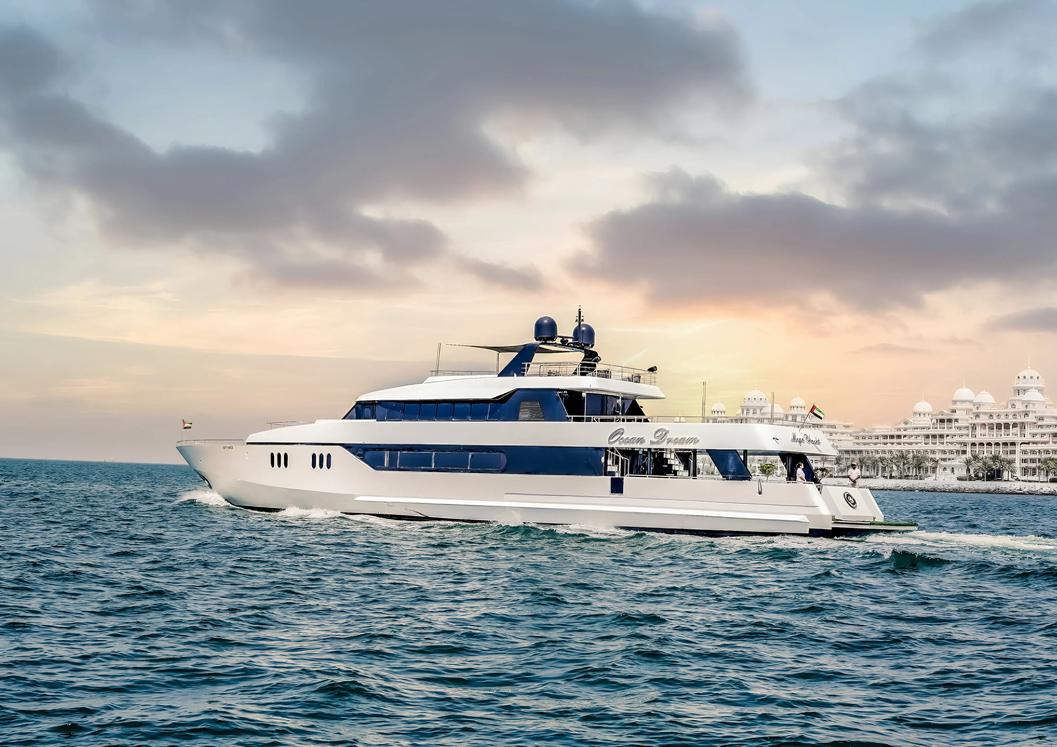 The Ocean Dream is the epitome of luxury, crafted to offer unparalleled comfort and elegance at sea. Spanning 143 feet, this extraordinary superyacht accommodates up to 130 guests, offering vast space and unmatched luxury for large groups or private events.