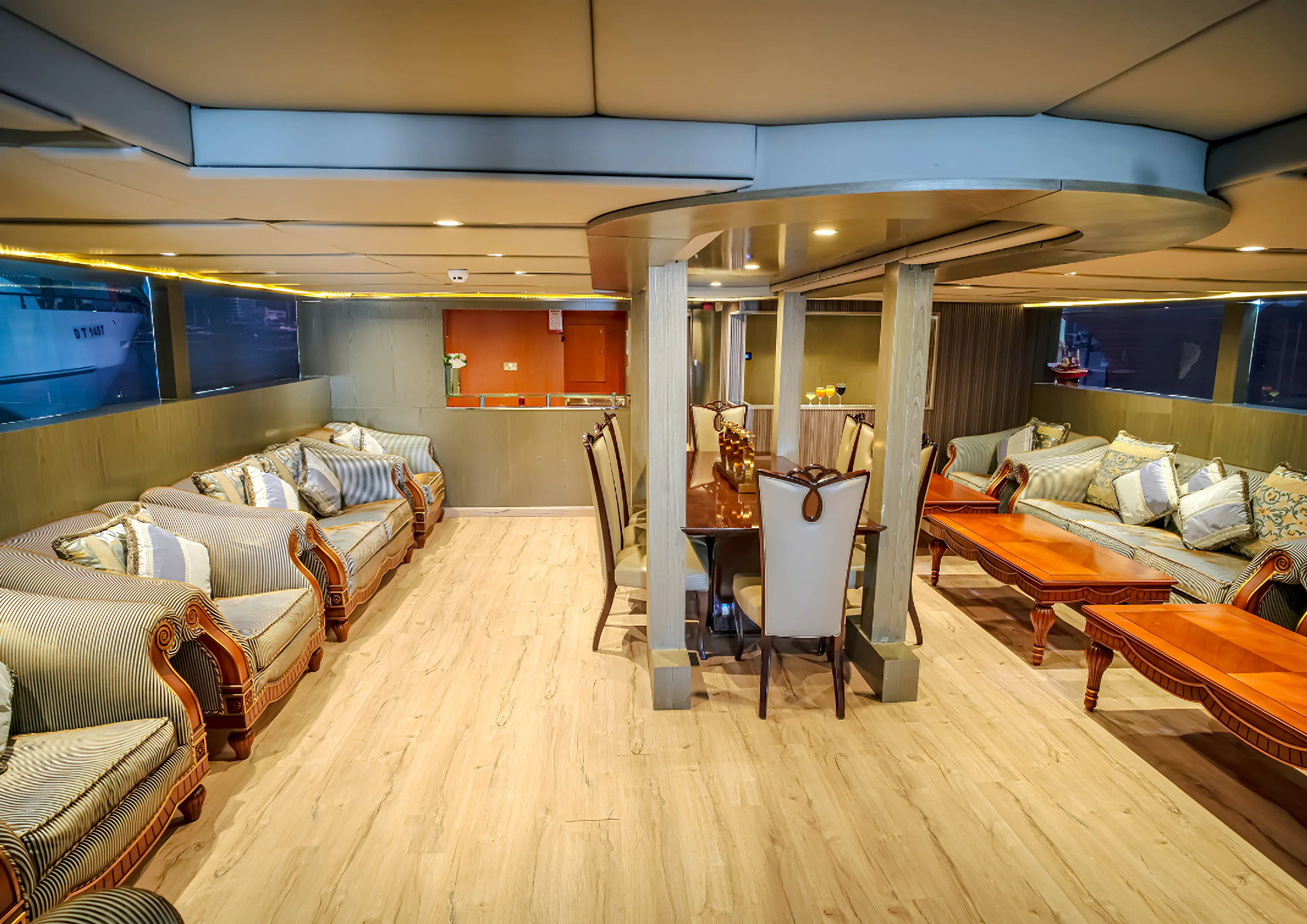 The main salon is a true masterpiece of modern design, featuring plush furnishings, panoramic ocean views, and an advanced entertainment system. Adjacent to the salon, a formal dining area sets the stage for unforgettable dining experiences, with gourmet meals prepared by the onboard chef.